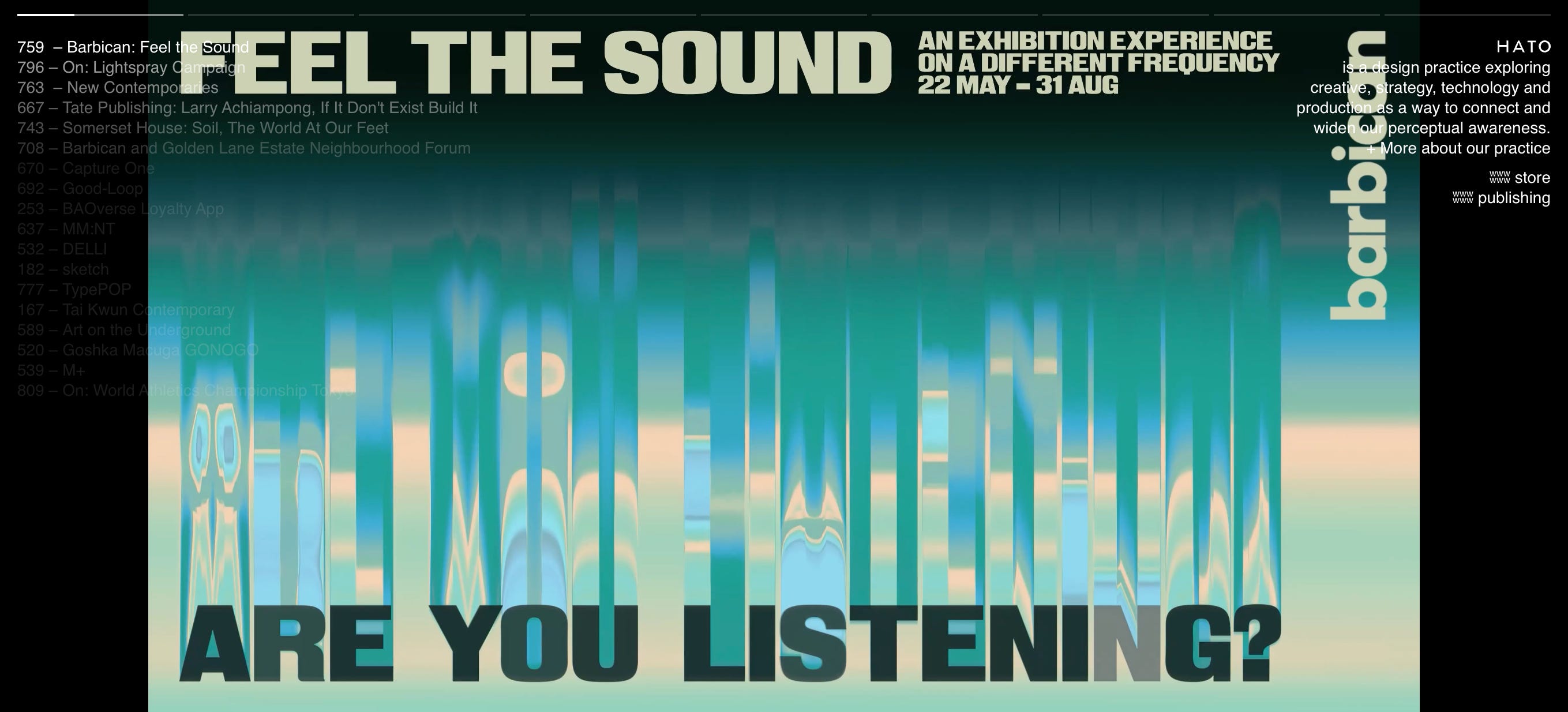For the Barbican’s Feel the Sound exhibition, you created the exhibition design and OOH. Could you tell us more about the project and how you approached making sound something visitors could experience visually?